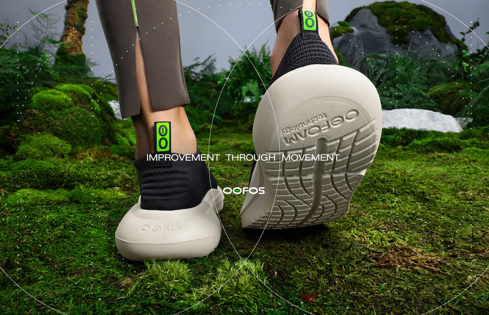 - Impact-absorbing OOfoam™ technology in OOFOS’ advanced OOmy footbed geometry